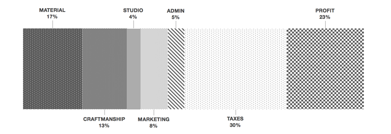 A handmade leather bag is an investment that will serve you for decades and even lifetimes. When buying a bag you should know why it costs what it costs. To illustrate this, we are disclosing full information on this. This breakdown is made as an average of the bags that are in Stella Soomlais’ collection.
