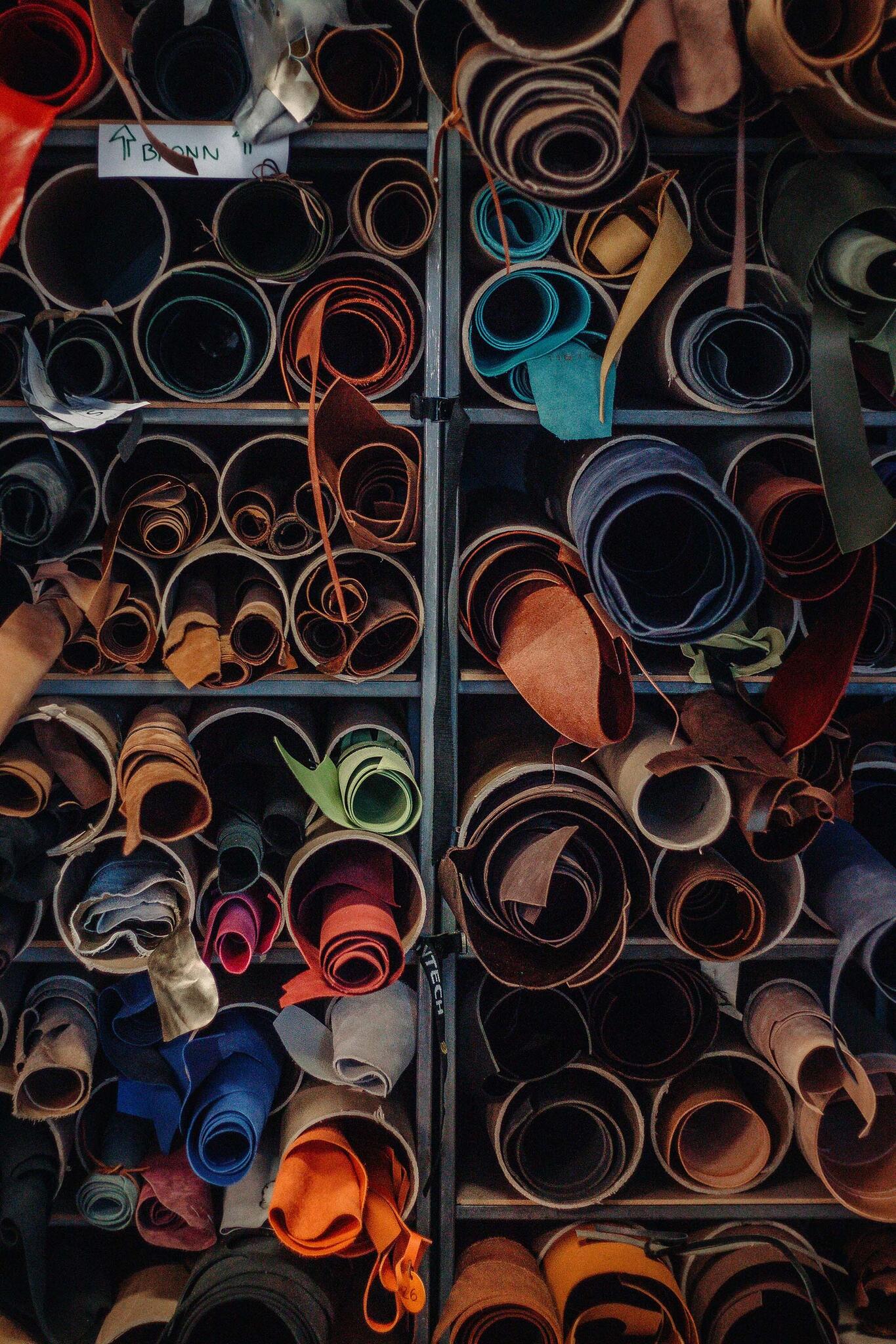 We use vegetable tanned leather from Europe – e.g. tanneries like Tärnsjö Garveri from Sweden, Sørensen Leather from Denmark, tanneries from Italian Vegetable Tanned Leather Consortium and Splenda Tannery from Spain. Our seasonal colors (like violet, turquoise and fuchsia) come from England JT Batchelor. For some occasions we also order chrome tanned leather from Palomares tannery from Spain. Usually we avoid using chrome tanned leather but sometimes it can be more suitable for some special projects.