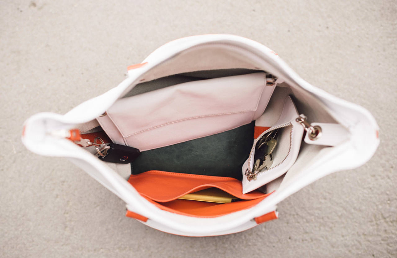 as an individual clutch. As a pocket it perfects the big bag into a true
