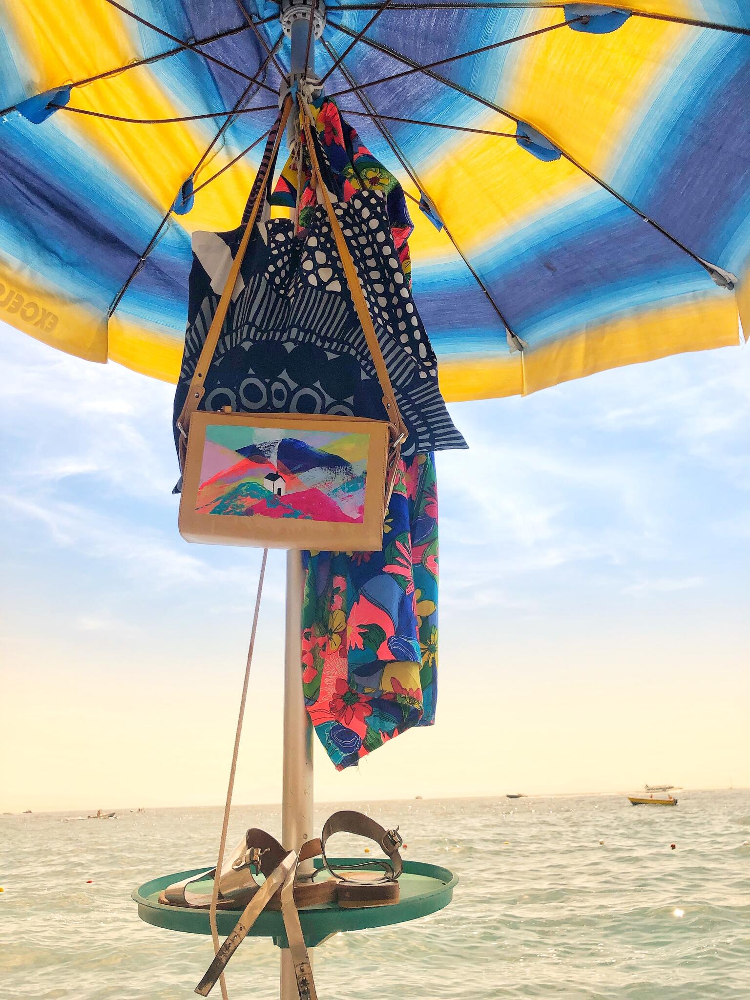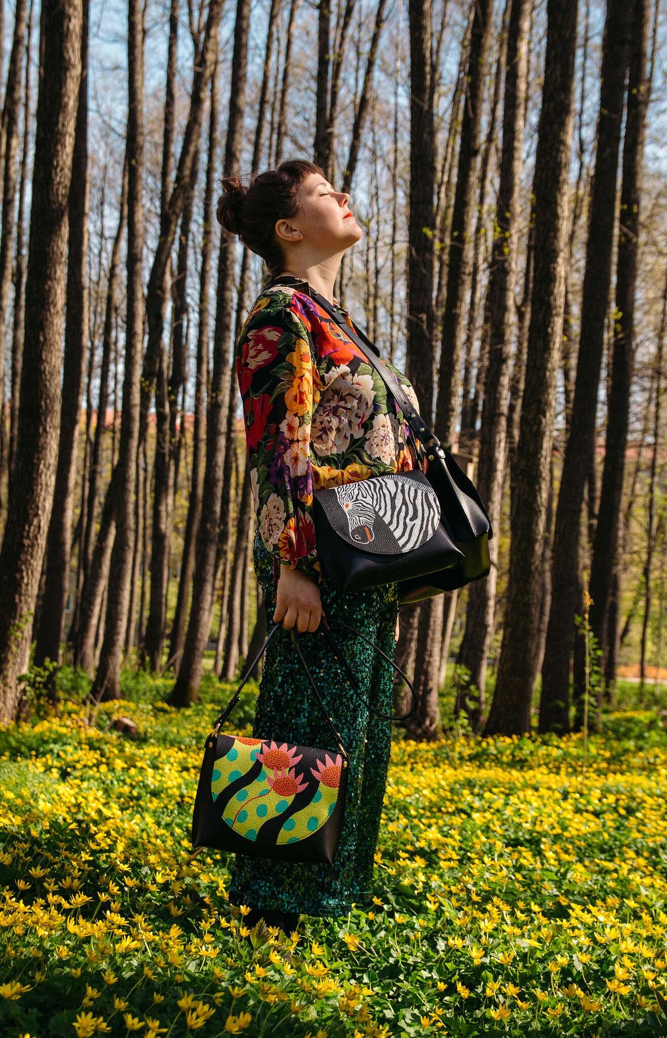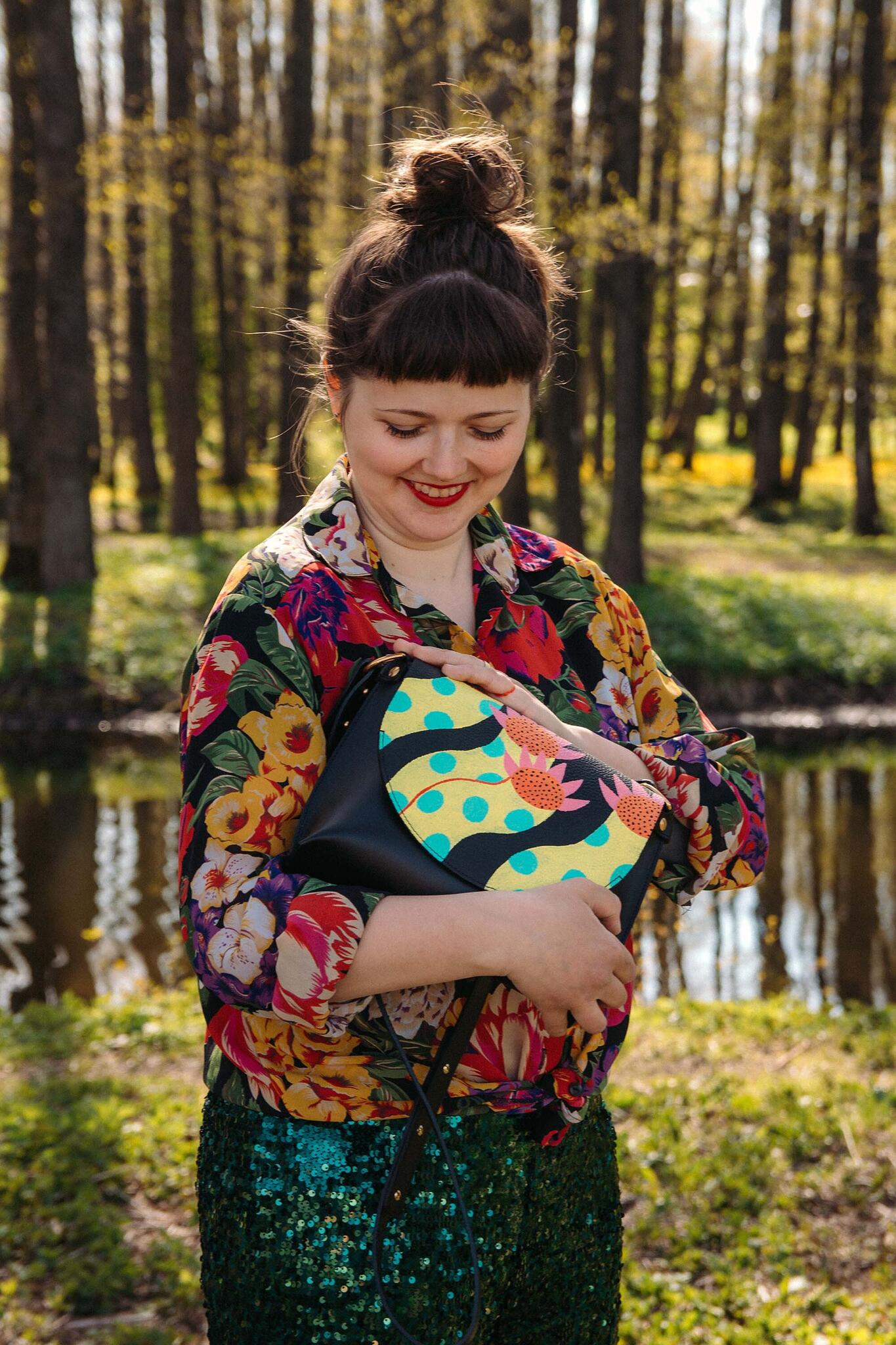 Krõõt was the first person to test the idea of “Wear an art piece, literally!” project – her colorful painting on a yellow Treasure Box bag with stained leather was our first try out if something like this would be interesting to people. We gladly discovered potential in it as the bag was sold within hours.