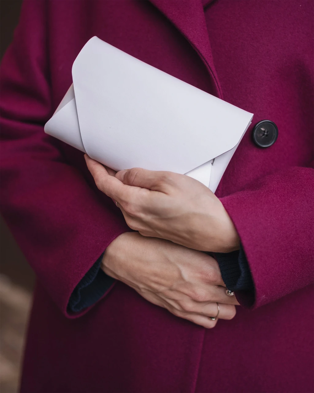 We're a reserved people out here. Which probably explains this leather clutch. Quiet and practical.