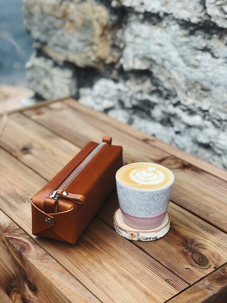 Our small leather goods are made from vegetable-tanned leather. It’s a durable, long-lasting material that ages beautifully with use.