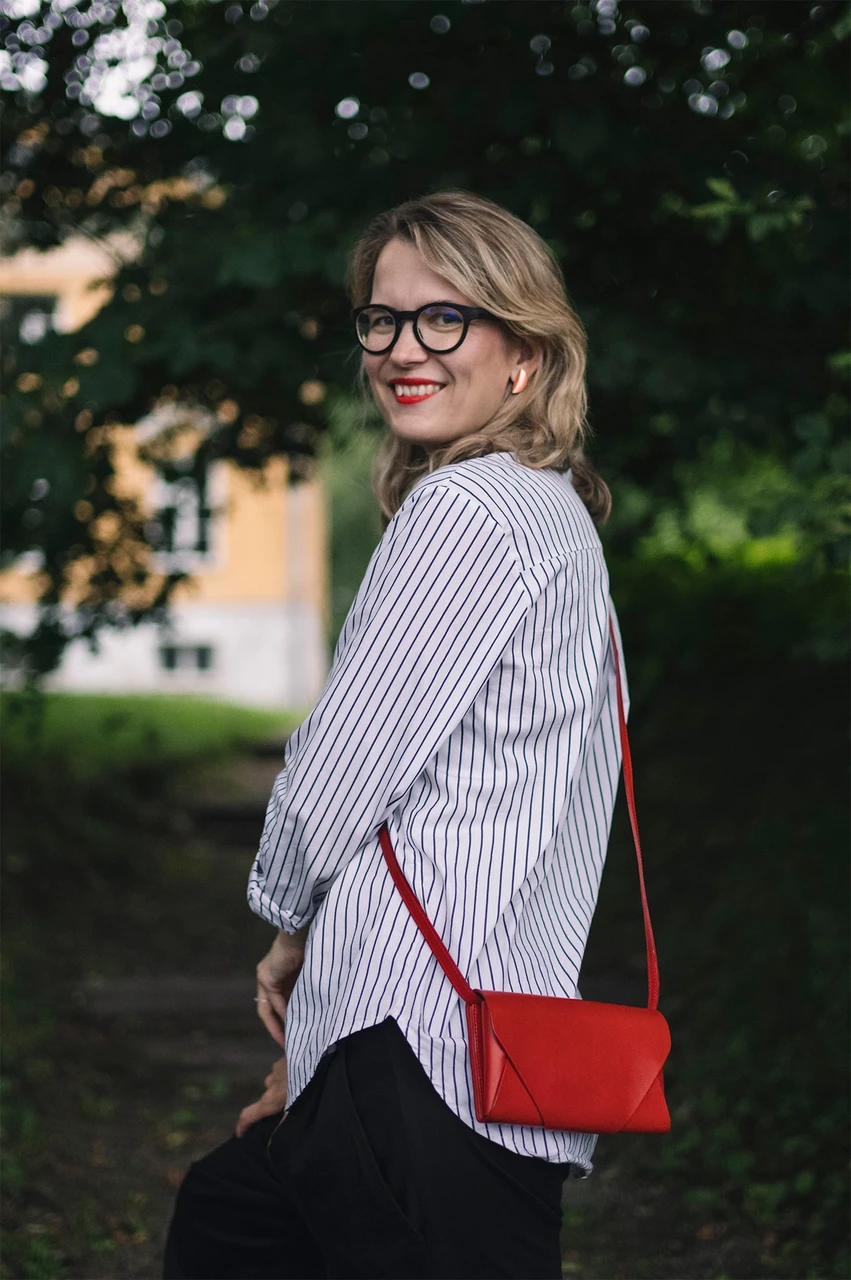 Kotis on ruumi sularahale, telefonile, võtmetele ja huulepulgale. Soovi korral saab kotile lisada kaarditaskud, mis hoiavad pangakaardid korras ning tagaküljele tõmblukuga münditasku, mis paneb asjale punkti.