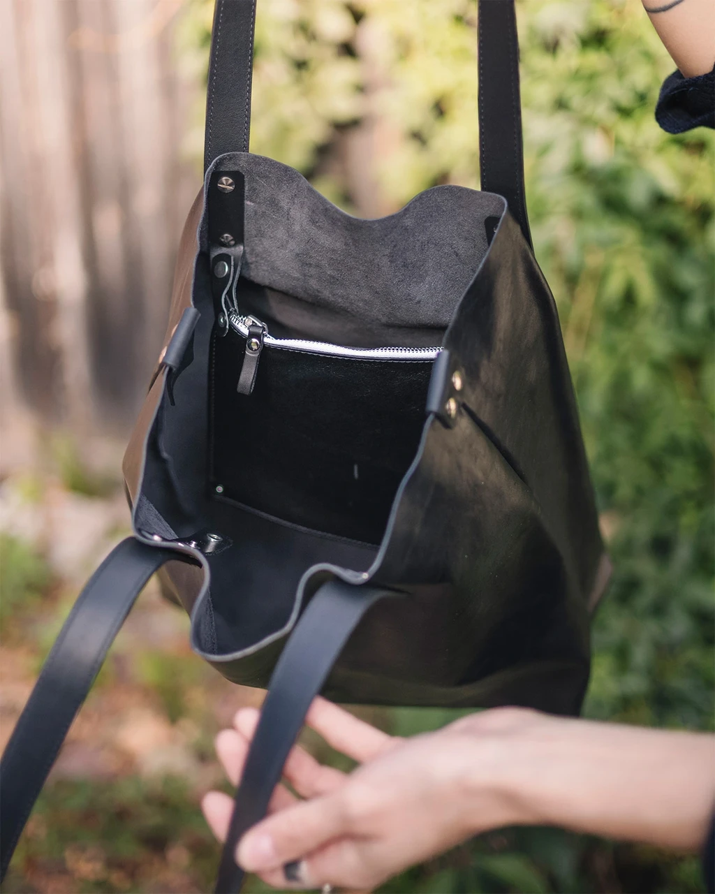Lihtne käekott, kuhu mahub palju. Ideaalne igapäevasteks käikudeks või nädalavahetuse reisideks. Kotti saab lisada eemaldatava tasku tõmblukuga.