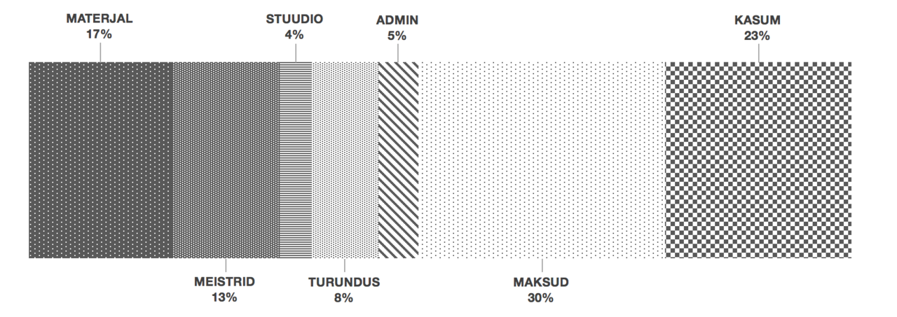 otsesed tootmise kui stuudio ja brändiga seotud kulud ning kasum.