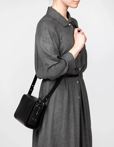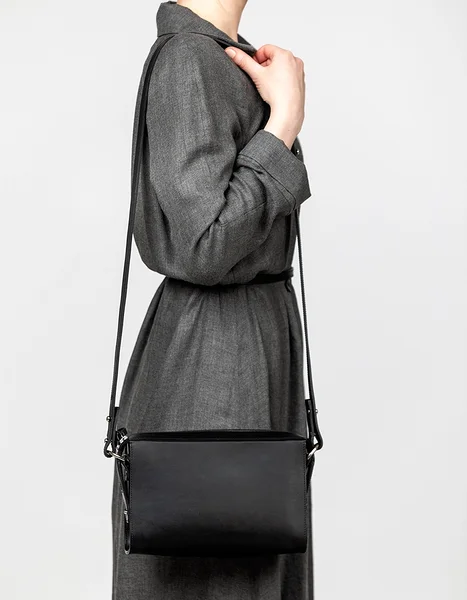 Minimalistic leather handbag with retro influences that fits a lot thanks to the wide opening. Compliments are guaranteed when wearing this bag.